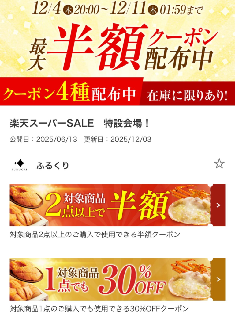 楽天ショップ「ふるくり」トップページのバナーから「楽天スーパーSALE特設会場」へお進みください!