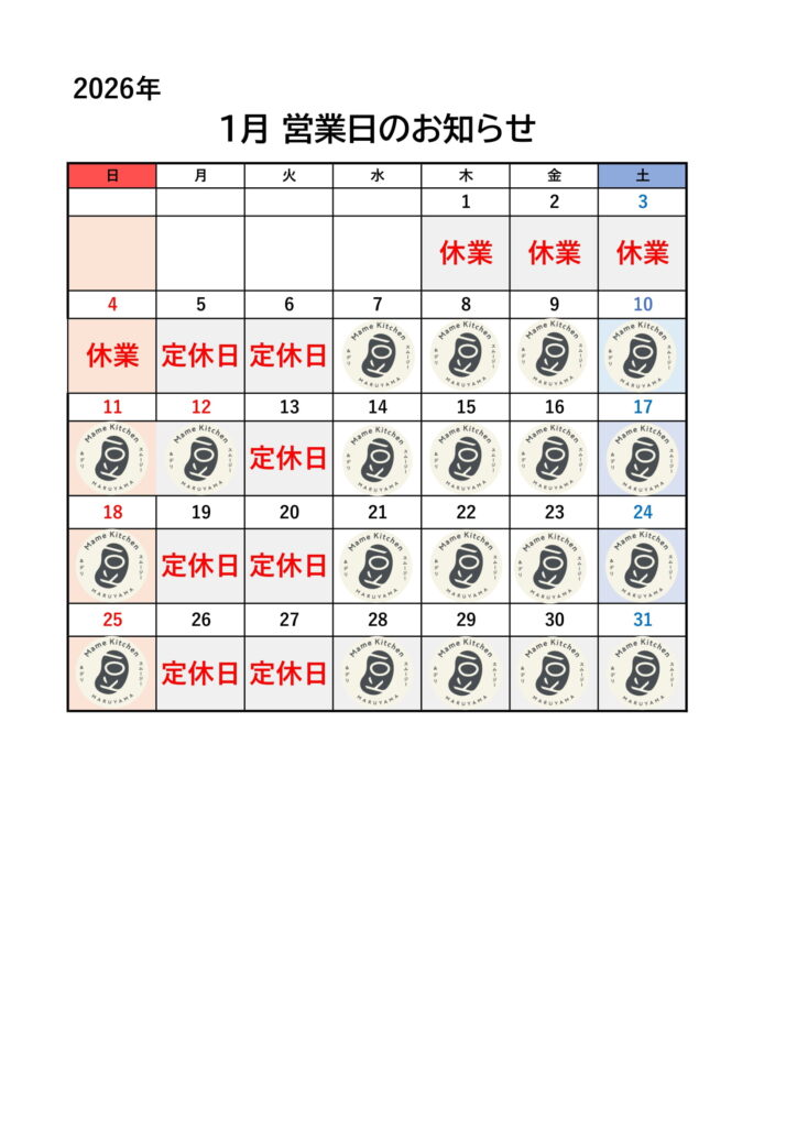 1月営業日のお知らせ by Madoka Taniguchi | Jan 7, 2026 | 営業日カレンダー | 0 comments 今年もどうぞ宜しくお願いいたします! 1月12日㈷「成人の日」営業いたします! Submit a Comment Cancel replyYour email address will not be published. Required fields are marked *Comment * Name * Email * Website Save my name, email, and website in this browser for the next time I comment.